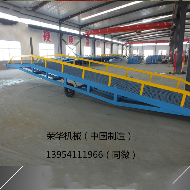 移動式登車橋應(yīng)用于無裝卸站臺或裝卸位置不固定以及裝卸場地狹小等場合,實(shí)現(xiàn)了貨物快速裝卸。通過它使叉車等搬運(yùn)車輛直接進(jìn)入貨車、集裝箱、列車車廂裝卸貨物,大大的提高了工效。登車橋采用手動液壓操縱,無需其它動力,能適用于各種裝卸場合;登車橋采用支腿支撐和網(wǎng)格狀鋼板結(jié)構(gòu),有更可靠的安全性能。